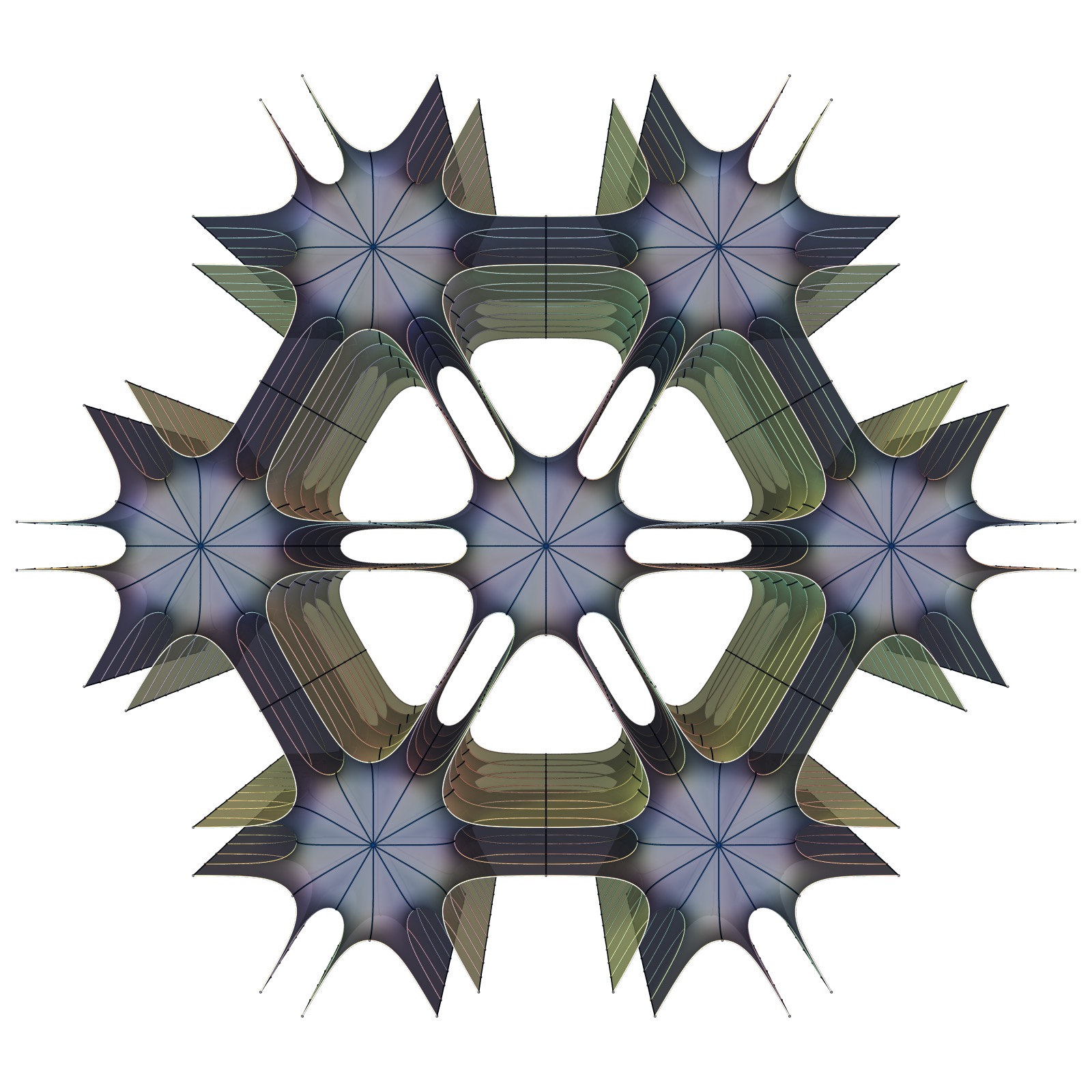 This task is not easy, because there is too much worth discussing, so I decided to split this into multiple posts, beginning today with his simplest surfaces. These are H’-T, H”-R, S’-S”, and T’-R’. I add to these P and H, found much earlier by Hermann Amandus Schwarz, because these six surfaces share enough properties so that a single piece of code can be used to compute all of them.