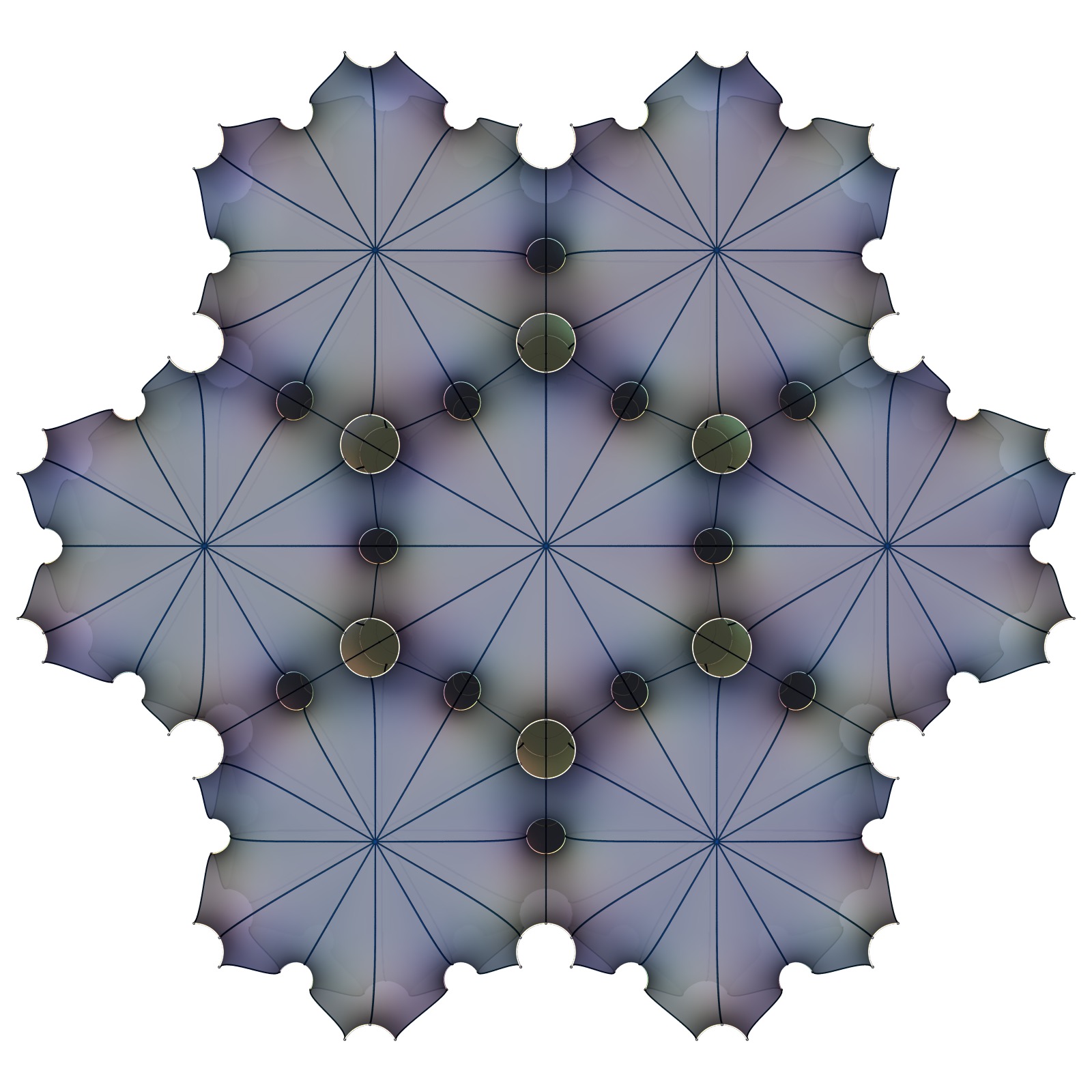 Finally, all the surfaces in today’s group come in a 1-parameter family and have similar limits. The catenoidal neck pattern and the singly periodic Scherk surface arrangement is encoded by the skeletal graphs: