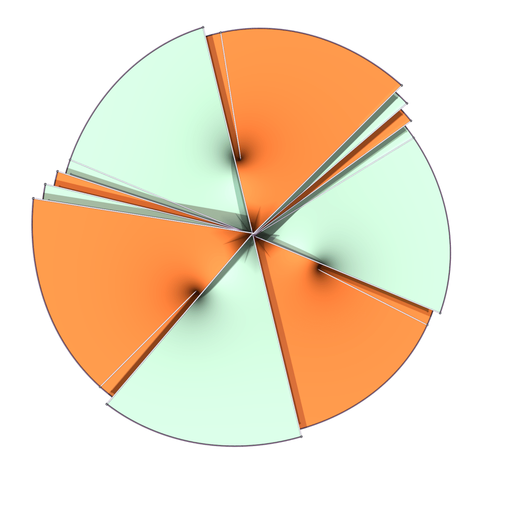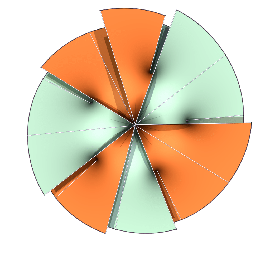 Above you can see a translation invariant surface with 8 ends and genus one in the quotient. It admits a deformation through screw motions either way, i.e. with positive or negative twist angles: