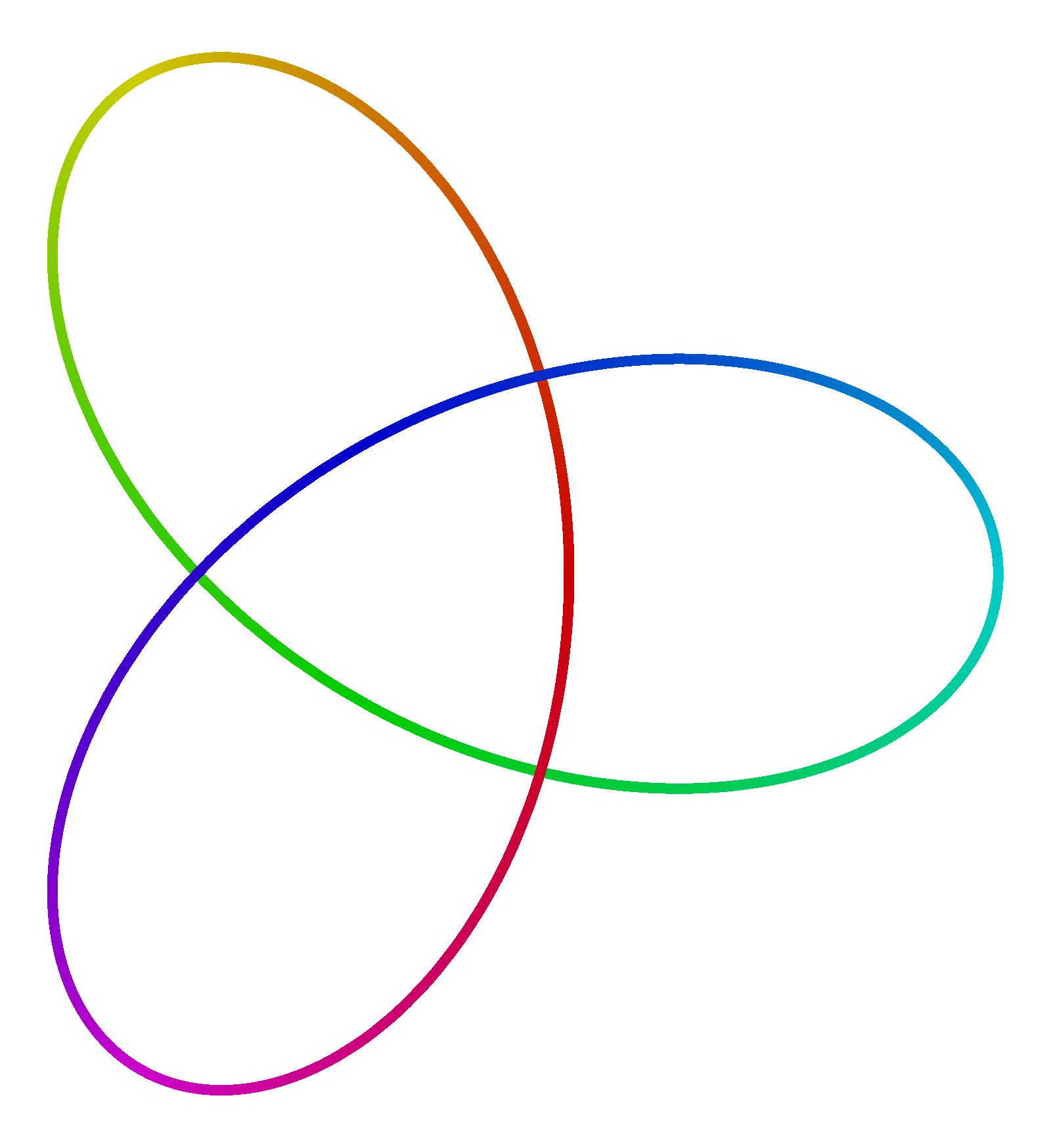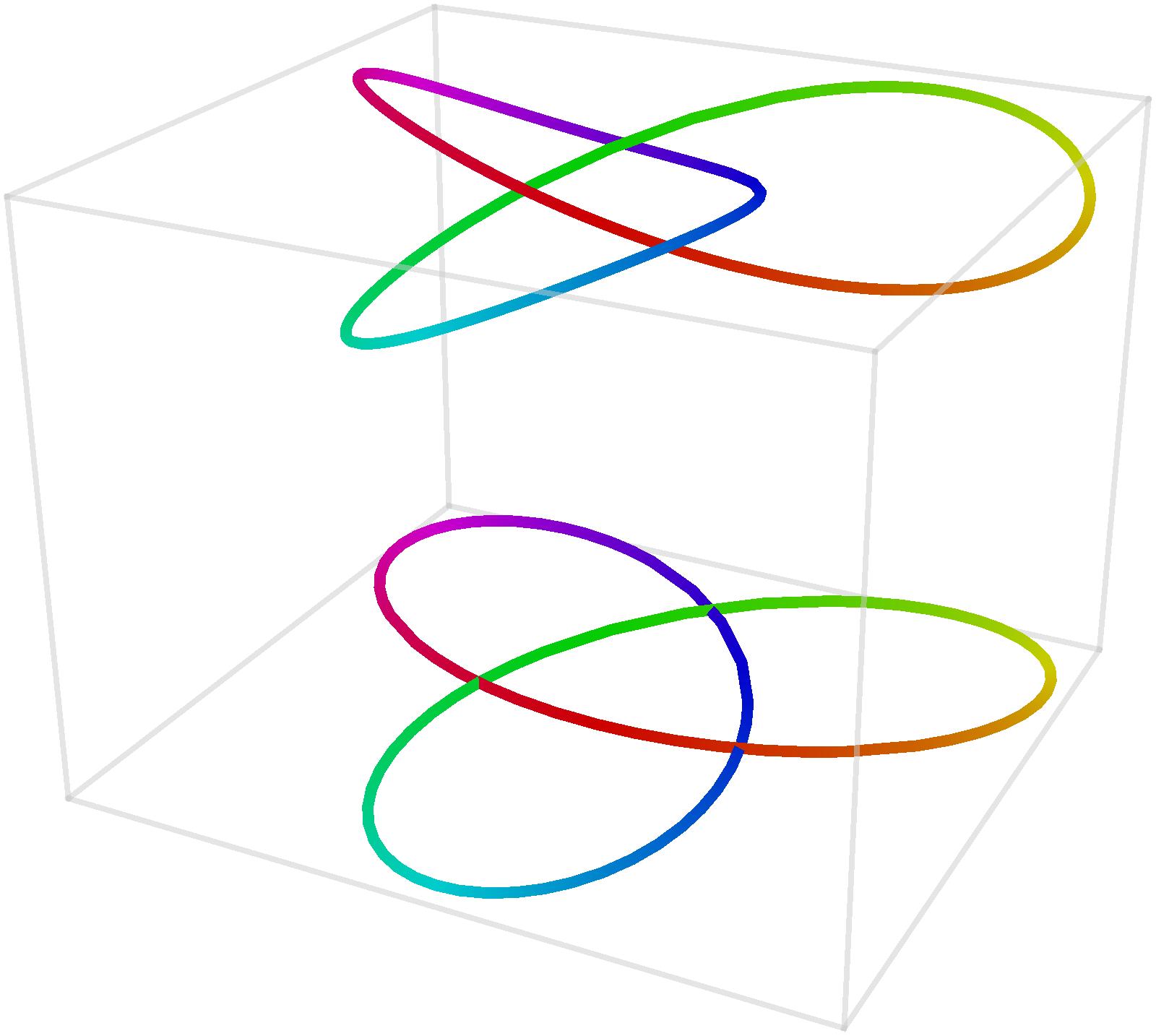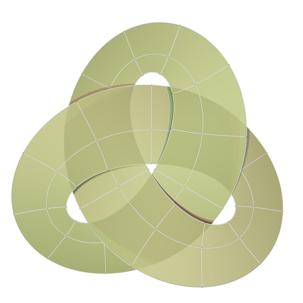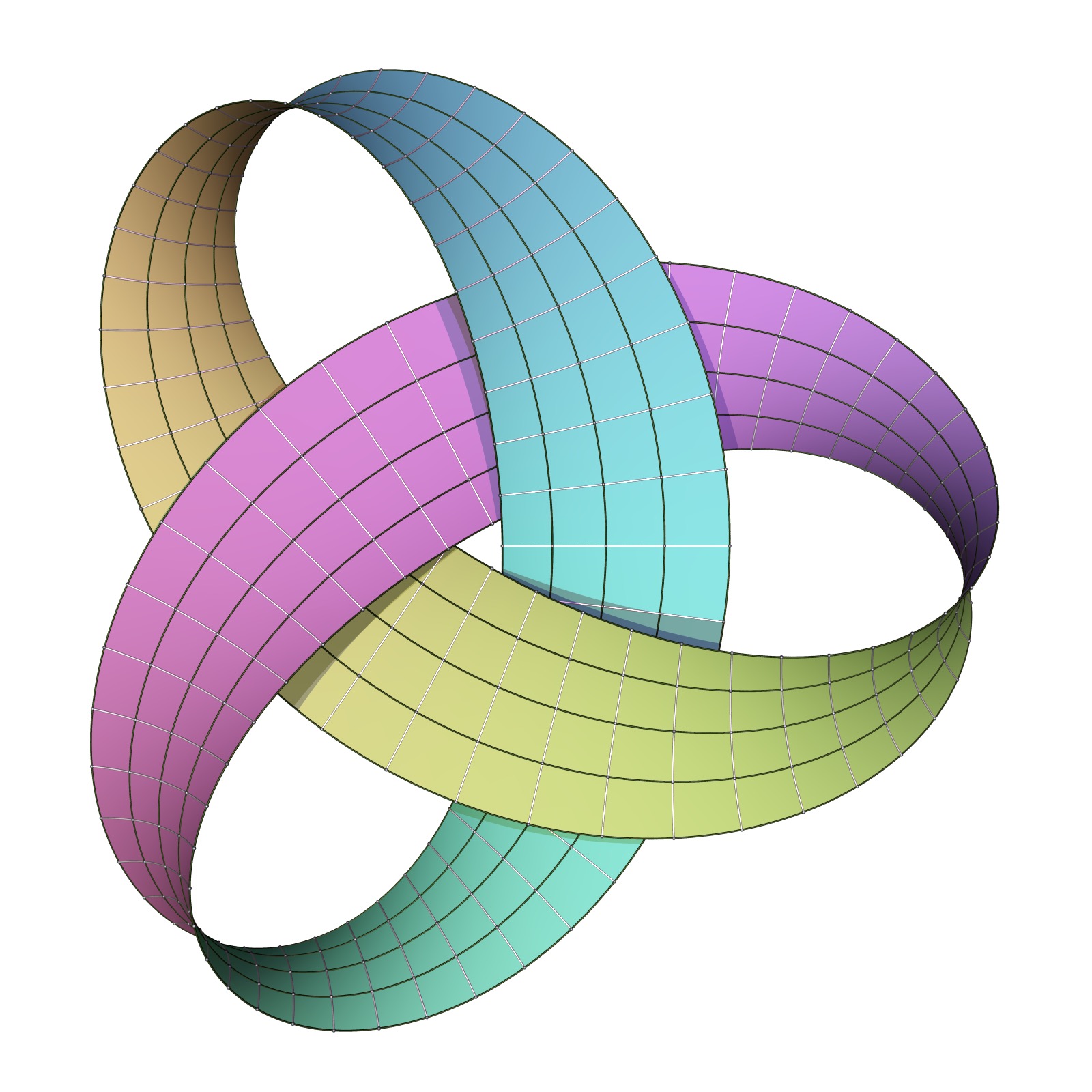 For twist 1/2, one obtains the desired Möbius strip. I have colored it with a periodic rainbow palette, and below are front and back of the same surface, so to speak.