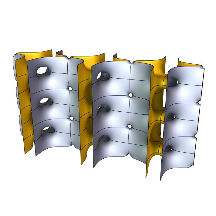 Here, the surface maintains the reflectional symmetries from the Costa saddles but loses all straight lines. The Callahan-Hoffman-Meeks surfaces appear to be rotated by 45º compared to the Lübeck-Batista surface. It would be very interesting to know whether these surfaces can be minimally deformed into each other through a continuous rotation of the CHM surfaces.