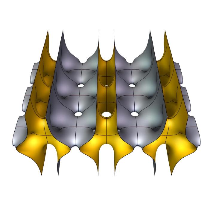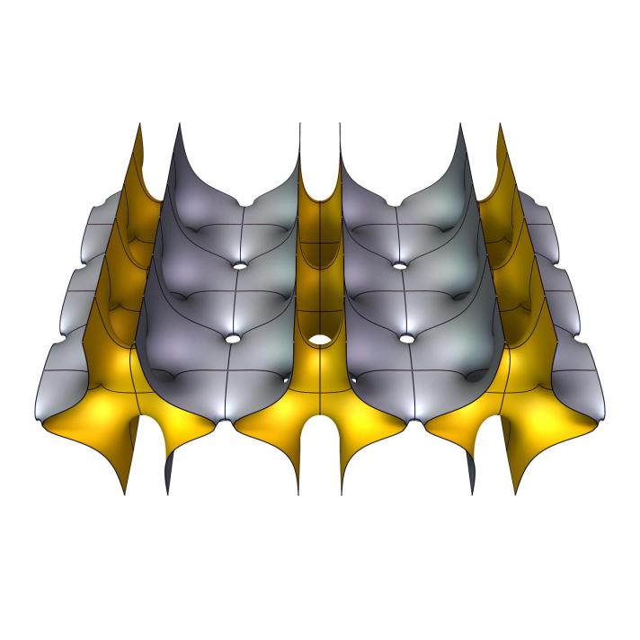 At the other limit, the surfaces apparently converge to 8-ended Scherk surfaces, stitched together using catenoidal necks.