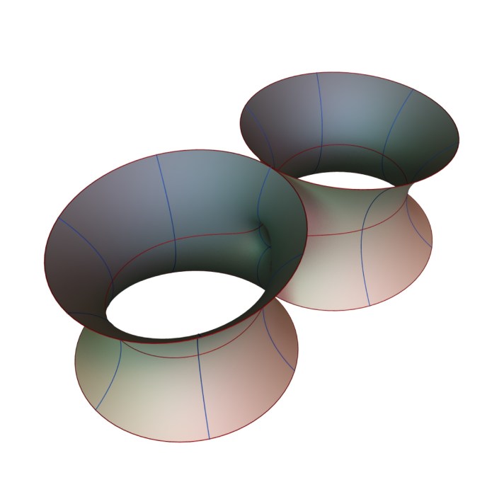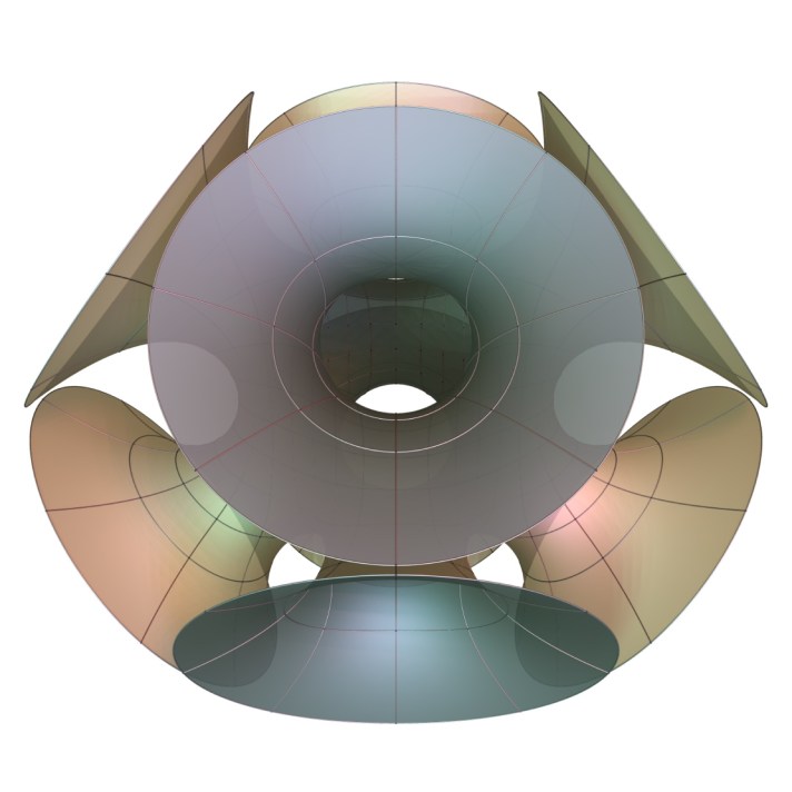 I should also mention that the handles connecting the catenoids can also grow inwards. This creates a little bit of a mess which is bearable in the extreme case of a 4-Noid. The left example is also on page 31b of Hermann Karcher’s Tokyo notes.