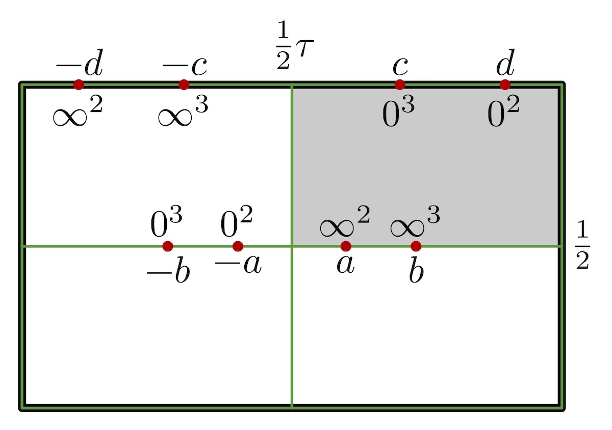 with the Abel condition asking for 1/2 + 2 a + 3 b = 3 c + 2 d. Thus the surfaces lose their normal symmetries about horizontal lines.