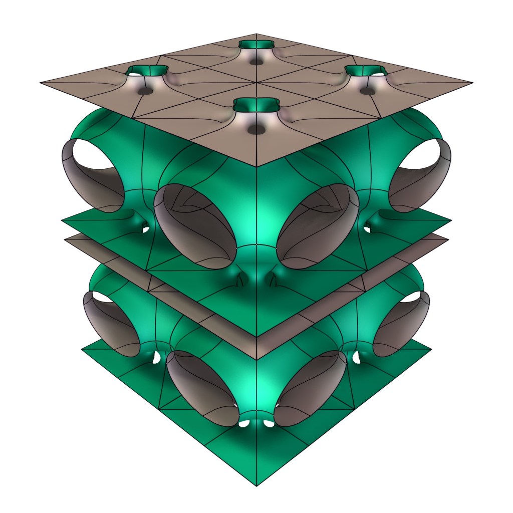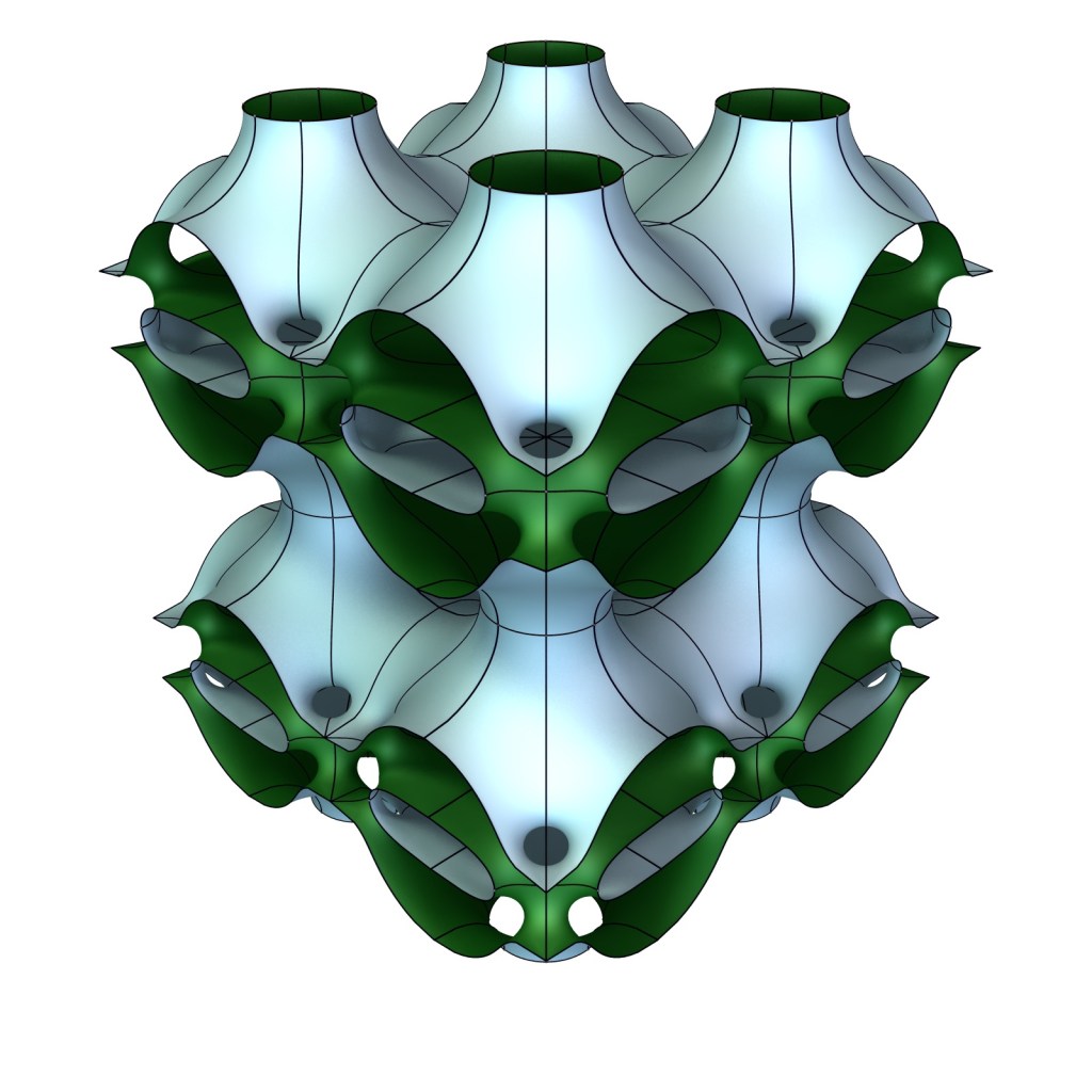 Besides the rather canonical deformation of Alan Schoen’s FR-D surface, there is also an exotic version that solves the same period problem as the canonical deformation, but with fewer symmetries. The statements on this page are at this point only based on numerical experiments.