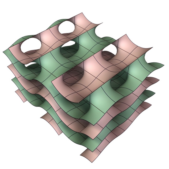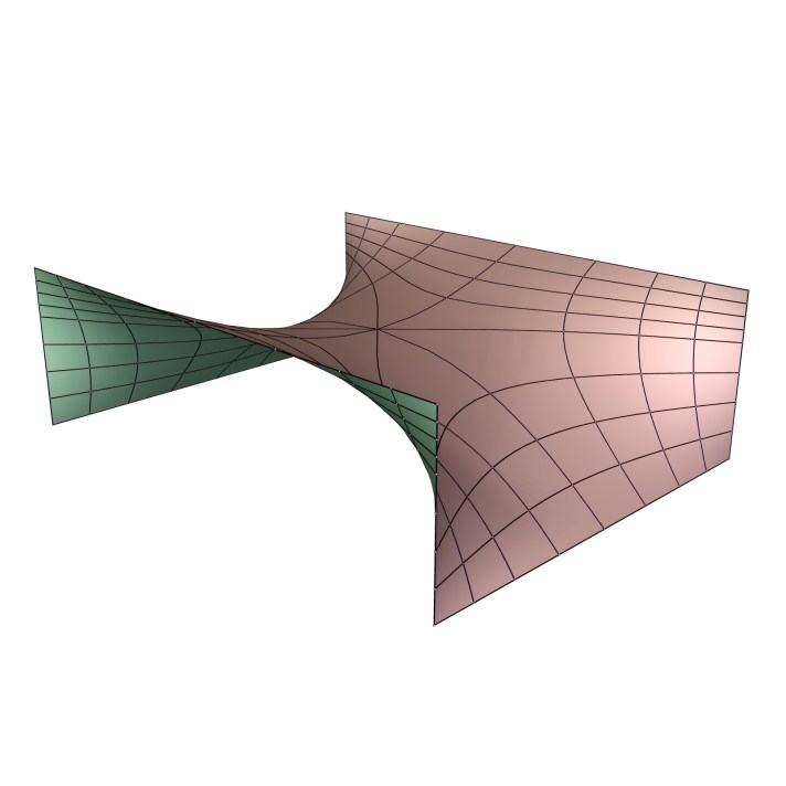 In case that a=.25, we have additional diagonal horizontal lines and the surface lies in a box over a square. This 1-parameter tD subfamily is called the tetragonal D-family.