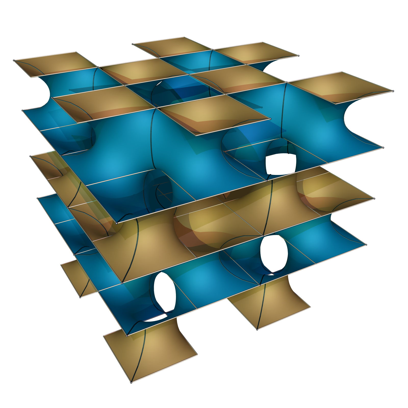 What we see here are Callahan-Hoffman-Meeks surfaces. So Alan Schoen’s I6 surface can be considered as a triply periodic version of the Costa surface, which Celso José da Costa discovered about 10 years later.