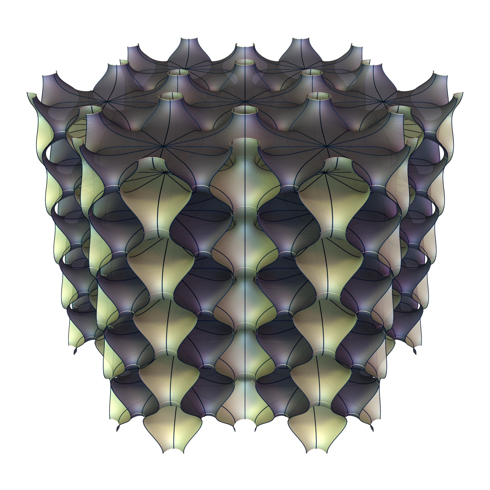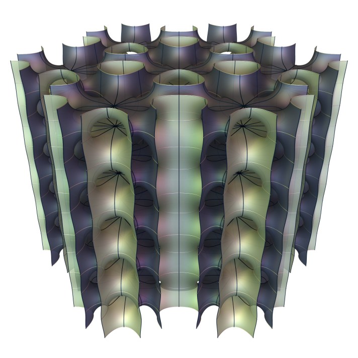 The other limit features 12-ended Scherk surfaces.