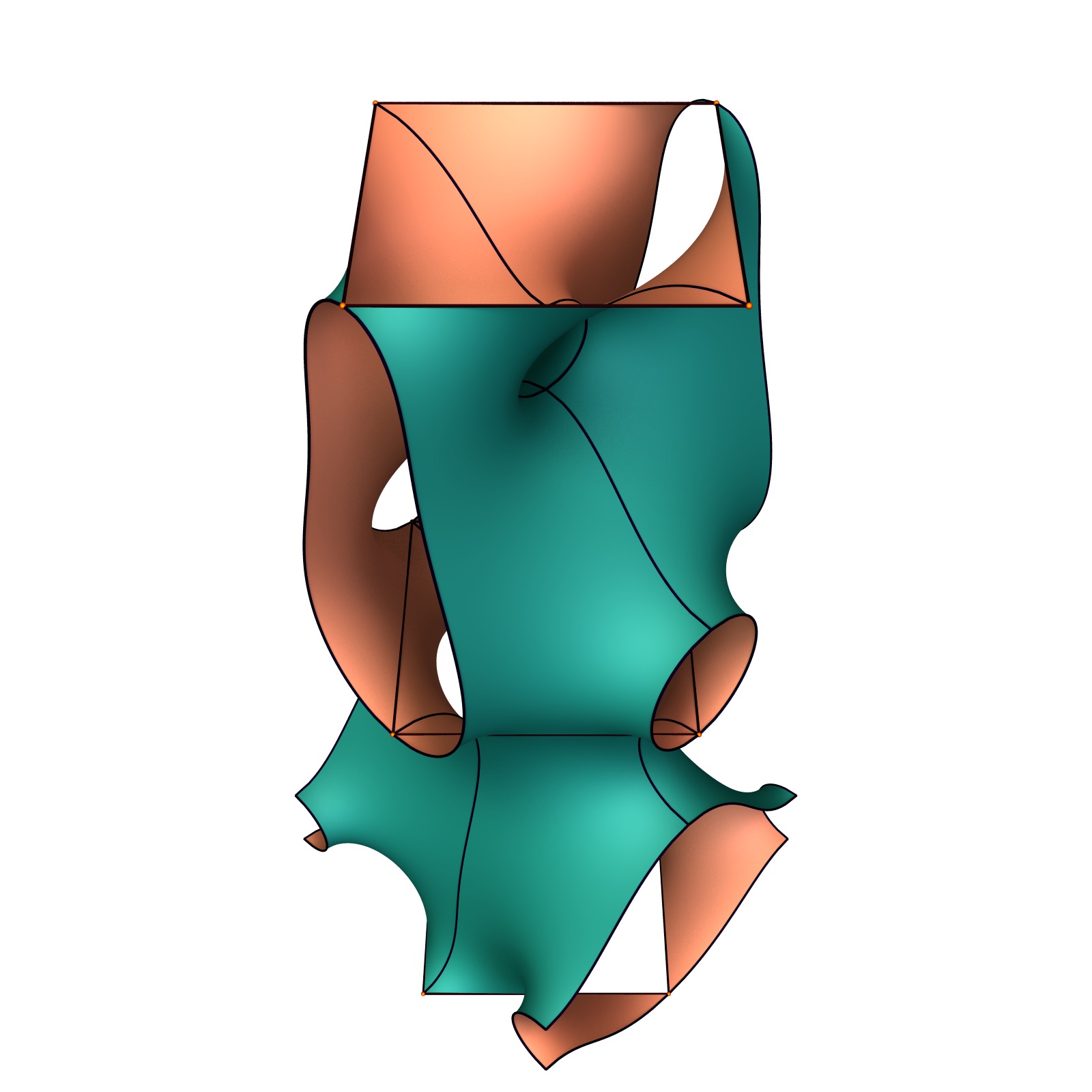 This is a surface with interesting limits. The divisor of the squared Gauss map is below.