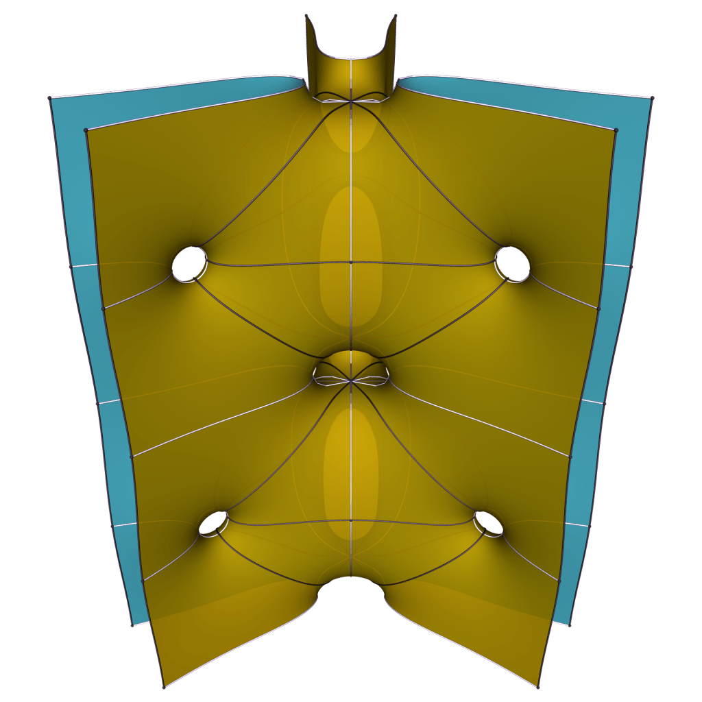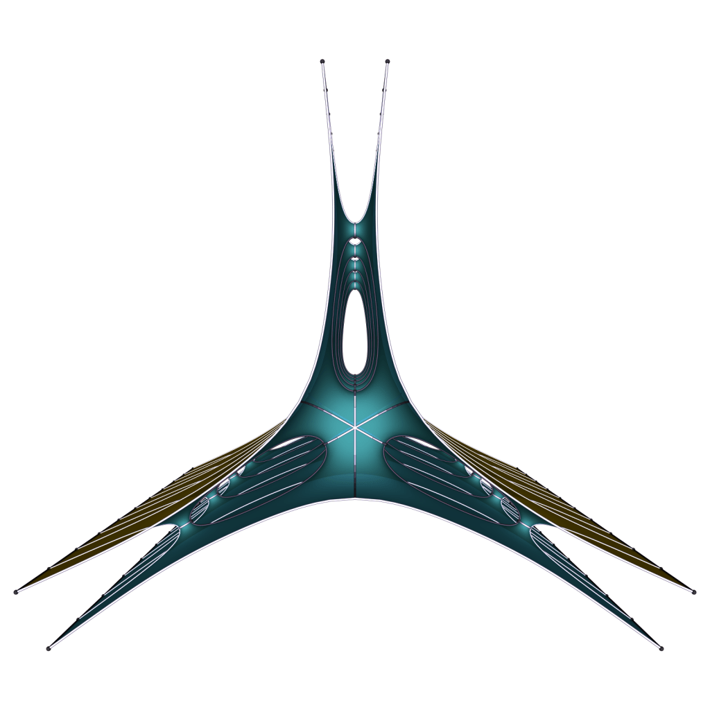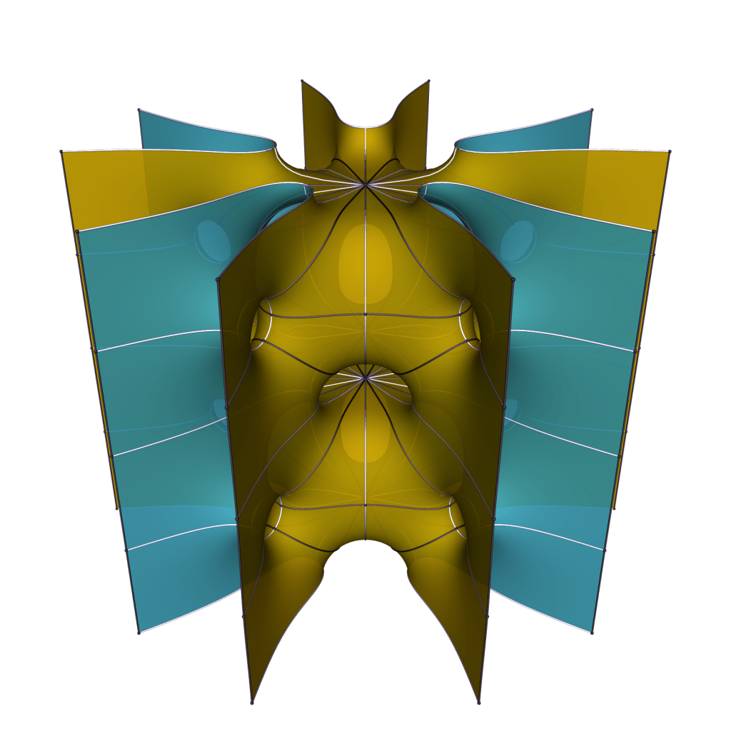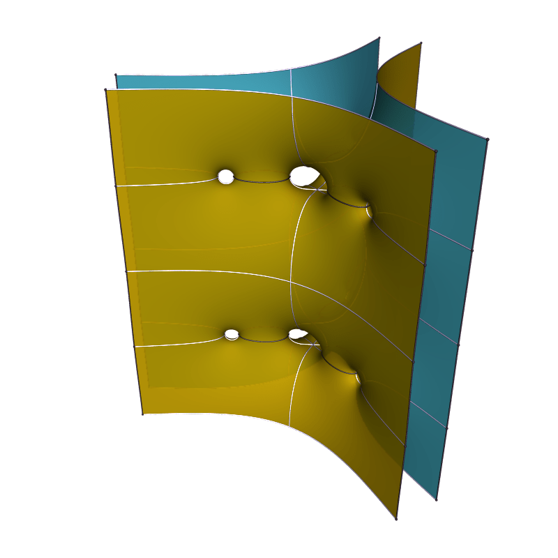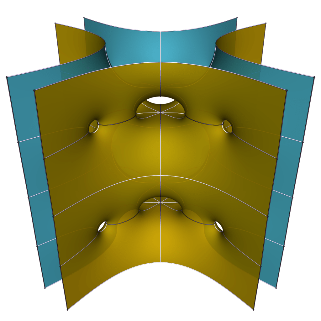 It doesn’t seem possible to make the ends parallel in pairs, so we expect the limit for k to ∞ to be a doubly periodic surfaces of genus one that is never embedded.