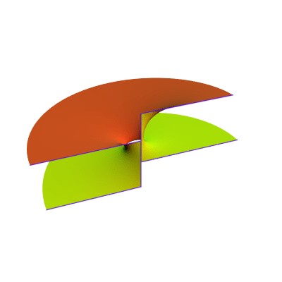 In their paper Minimal surfaces in a Wedge of a Slab, Francisco López and Franscisco Martín construct a curious translation invariant minimal surface with planar ends: