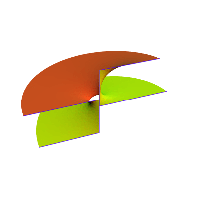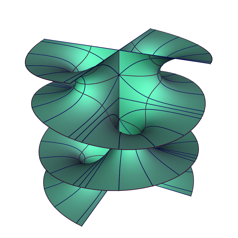 The first image above is half of the slab surface, and the fifth is half of the translation invariant helicoid with handle.