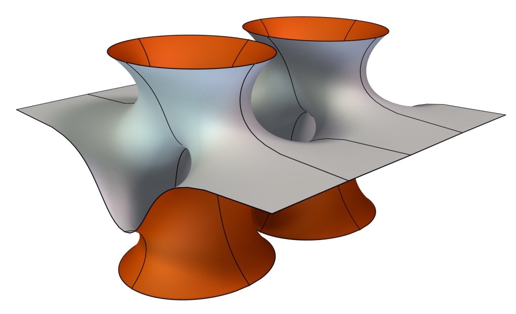This translation invariant surface is one of several singly periodic versions of the Costa surface. It has genus 1 in the quotient, two annular and two catenoidal ends.